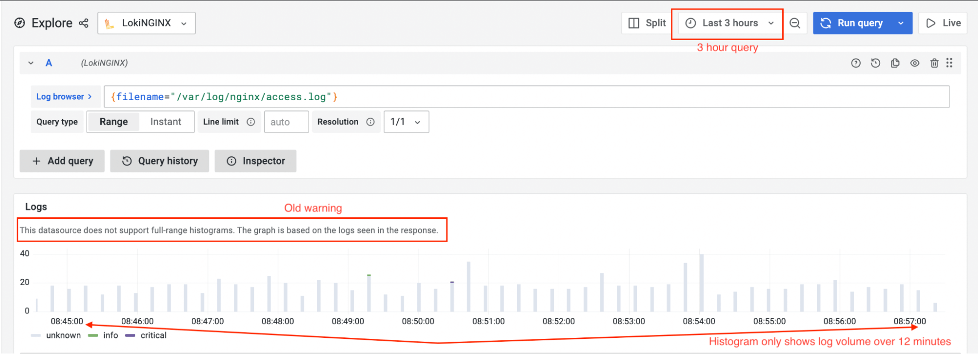 feature toggle to false. The only reason we anticipate users will choose to do this is because the full-range histogram puts increased query load on Loki. Feedback from early OSS adopters plus our own internal testing is that the load increase shouldn’t be problematic, but we are retaining the feature toggle as a safety shutoff for now. We intend to remove it in Grafana 8.5.