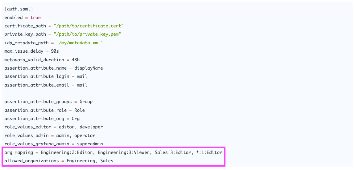 Additionally, you can now grant multiple SAML organizations access to Grafana, using the allowed_organizations