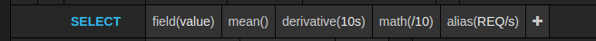 SELECT derivative(mean("value"), 10s) / 10 AS "REQ/s"