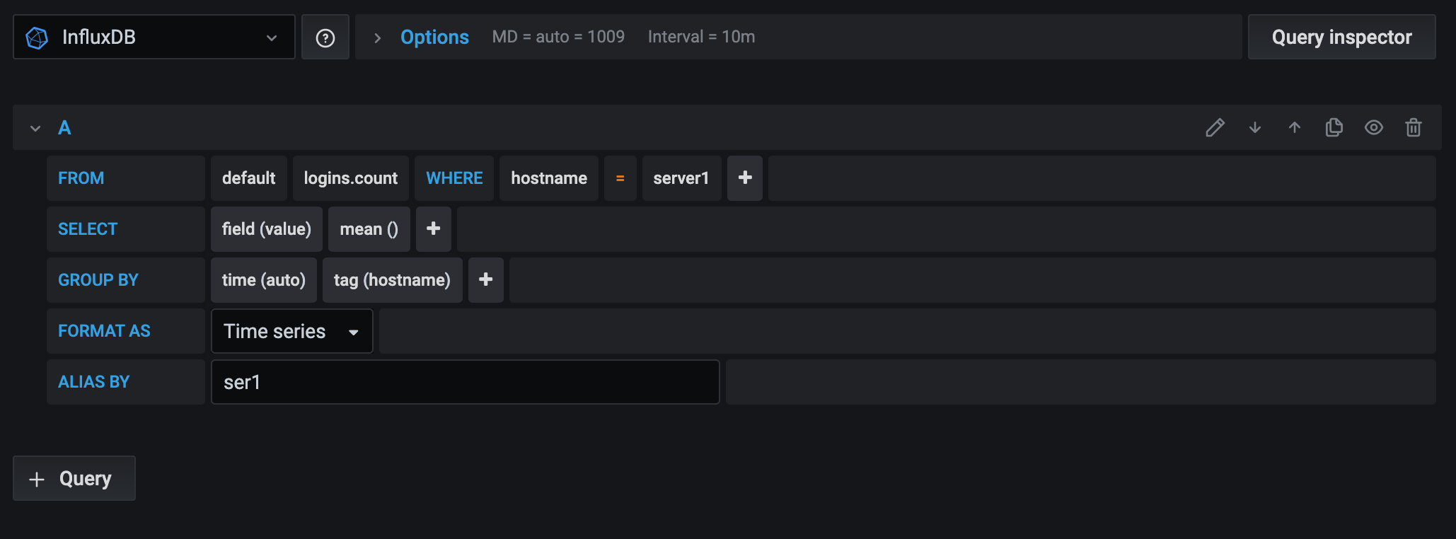 Because of the difference between query languages, data sources may have query editors that look different. Here are two examples of query editors:
