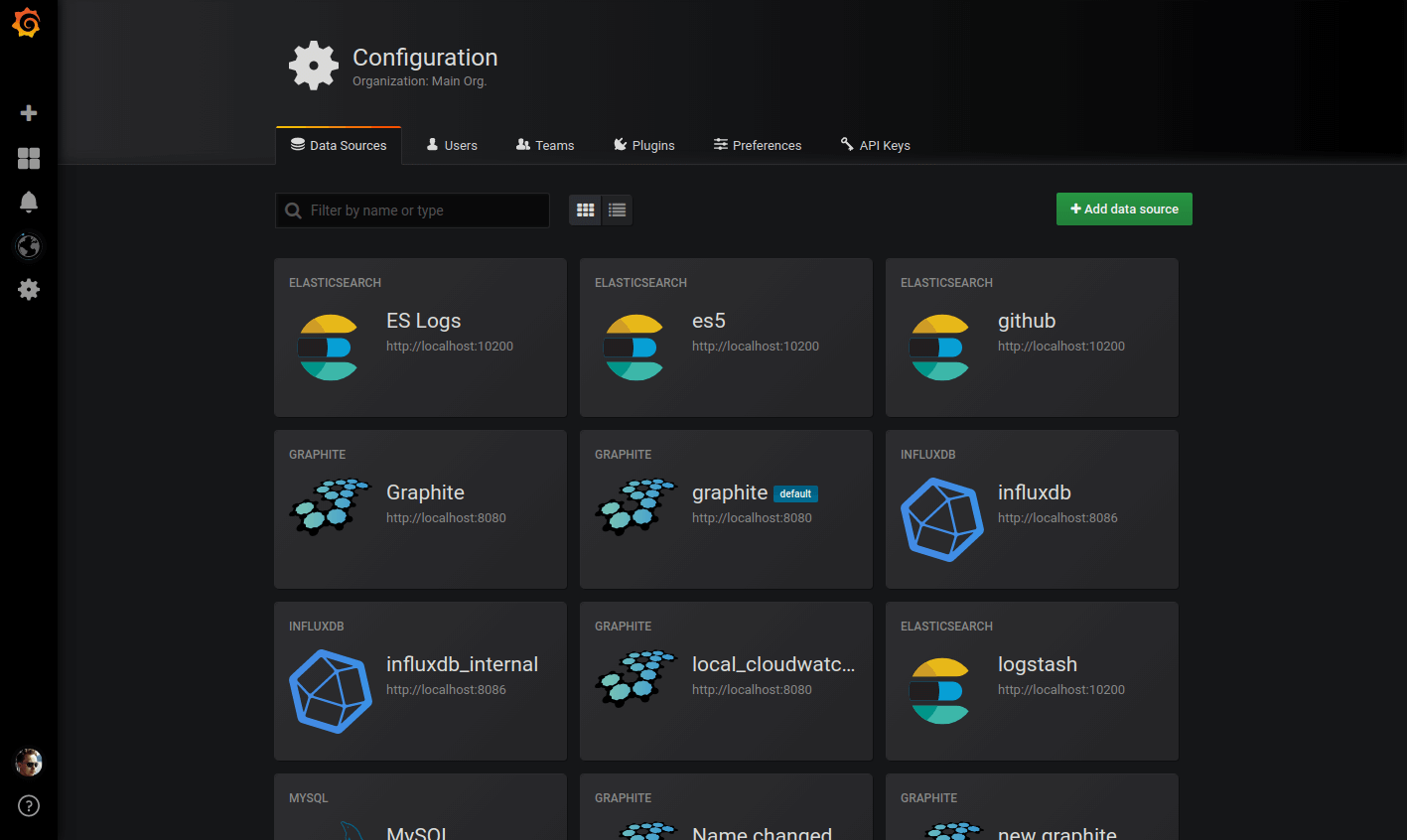 Data sources can now be set up using config files. These data sources are by default not editable from the Grafana GUI. It’s also possible to update and delete data sources from the config file. More info in the data source provisioning docs.