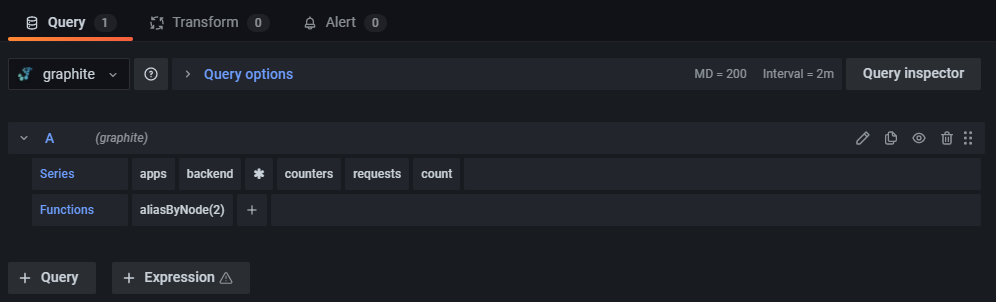 - Query tab - Select your data source and enter queries here. For more information, refer to Queries.