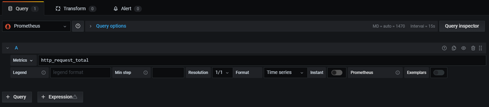Use you a query editor to write a query. Each data source has its own query editor that we have customized to include the features and capabilities of the data source. Grafana supports up to 26 queries per panel.