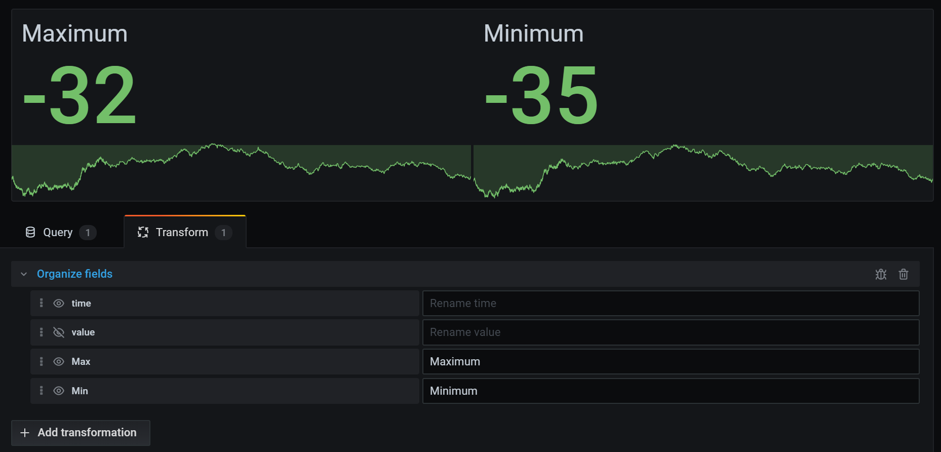 - To apply another transformation, click Add transformation.