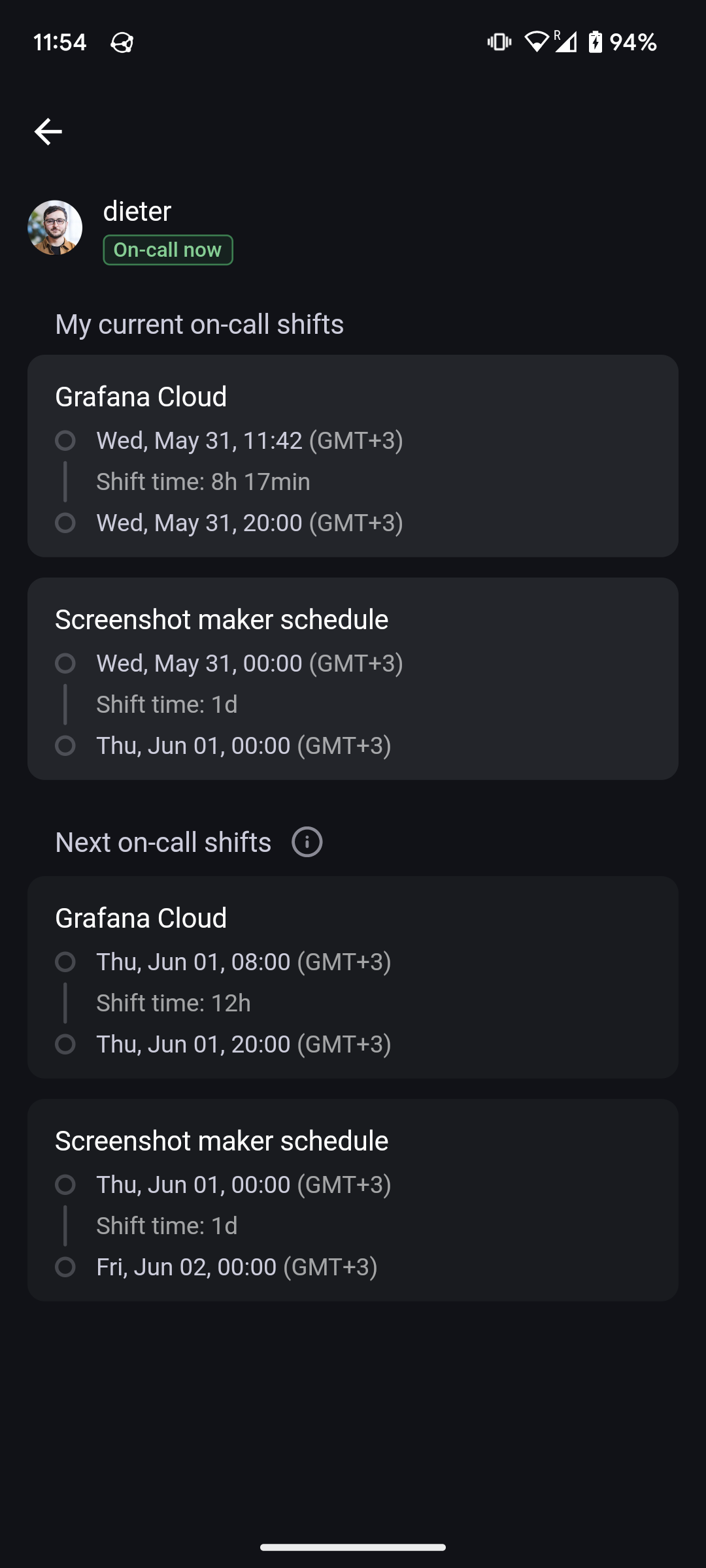 • your current shift (if any), per schedule.