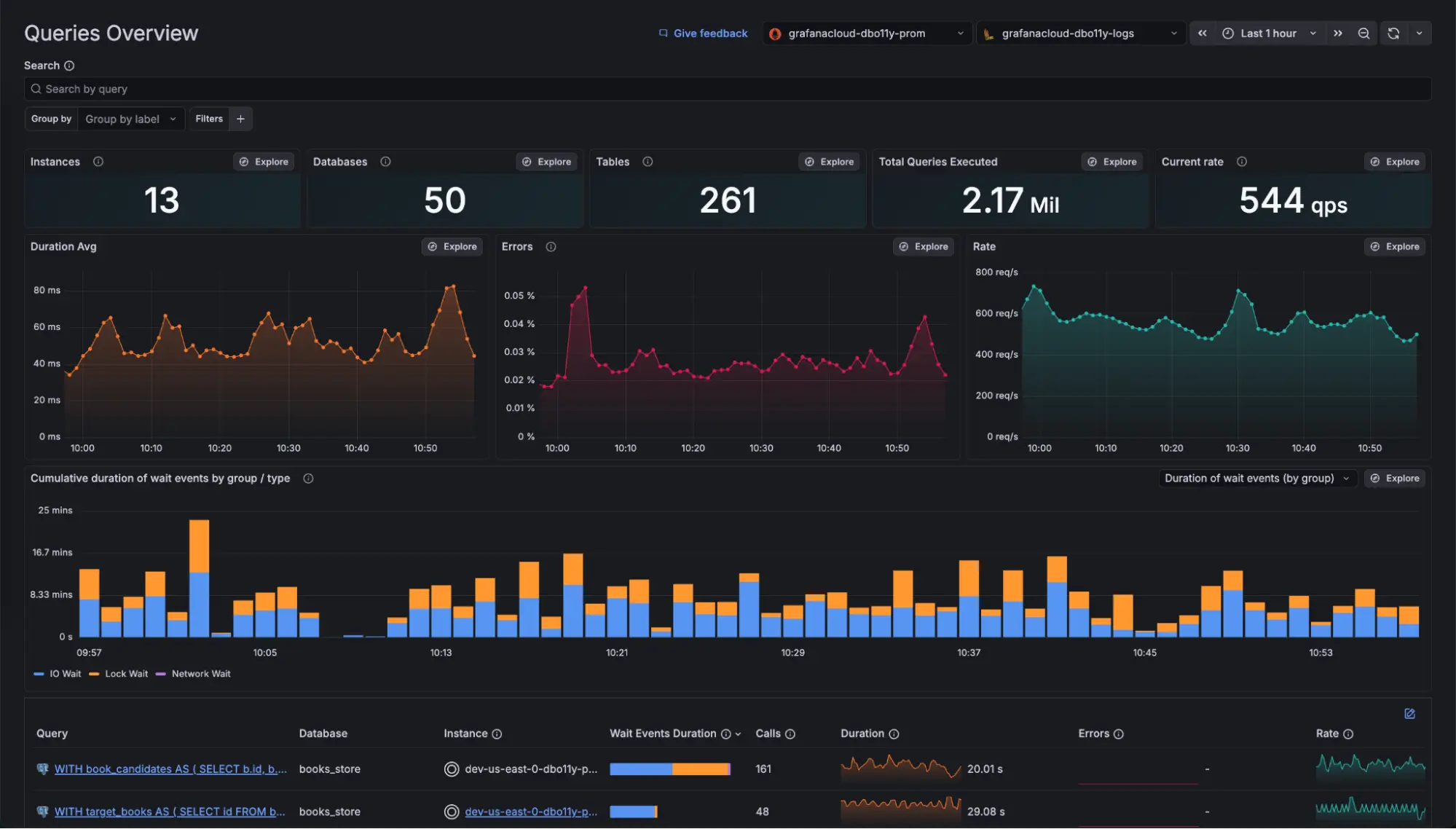 • Surface hidden bottlenecks. Filter queries by custom-defined labels, and sort by wait time, errors, or latency to isolate the exact problematic queries