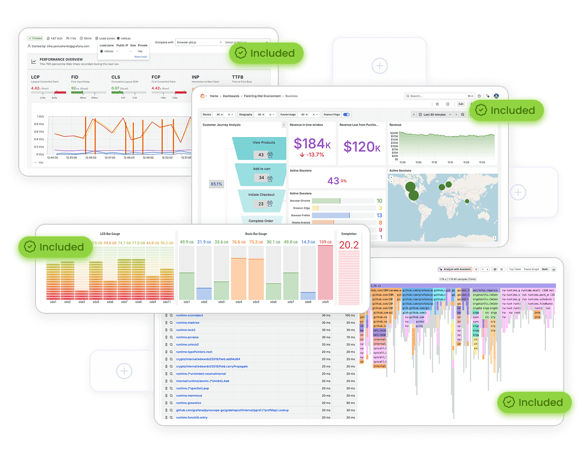 The free tier of Grafana Cloud is a no-cost, fully managed observability platform—no credit card required. You get the same Grafana Cloud experience and features as paid plans: application performance, user experience, infrastructure health, reliability workflows, and AI-assisted insights in a single platform, without the need to run or maintain backend infrastructure.