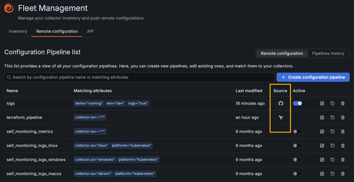 And that’s not all—we’ve also introduced a Source column in the Fleet Management UI, so you can see at a glance where your synced pipelines came from.